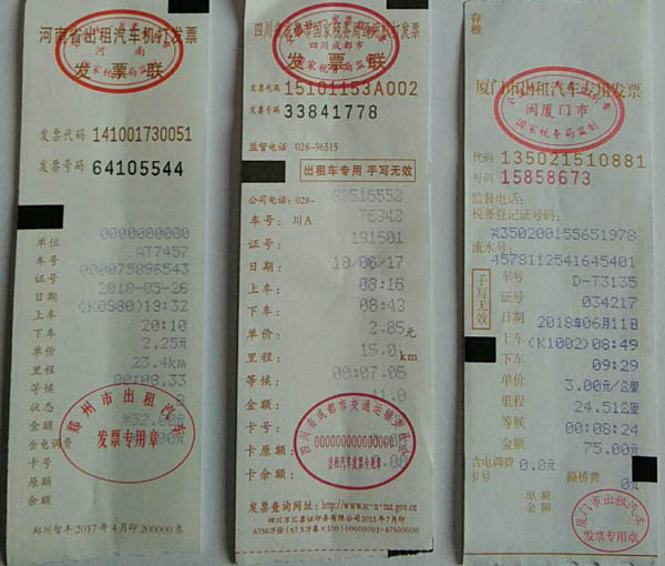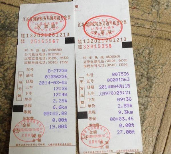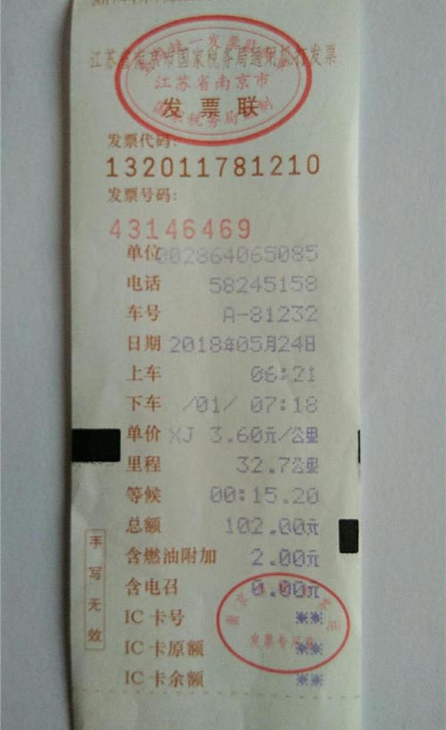 南京出租车票展示